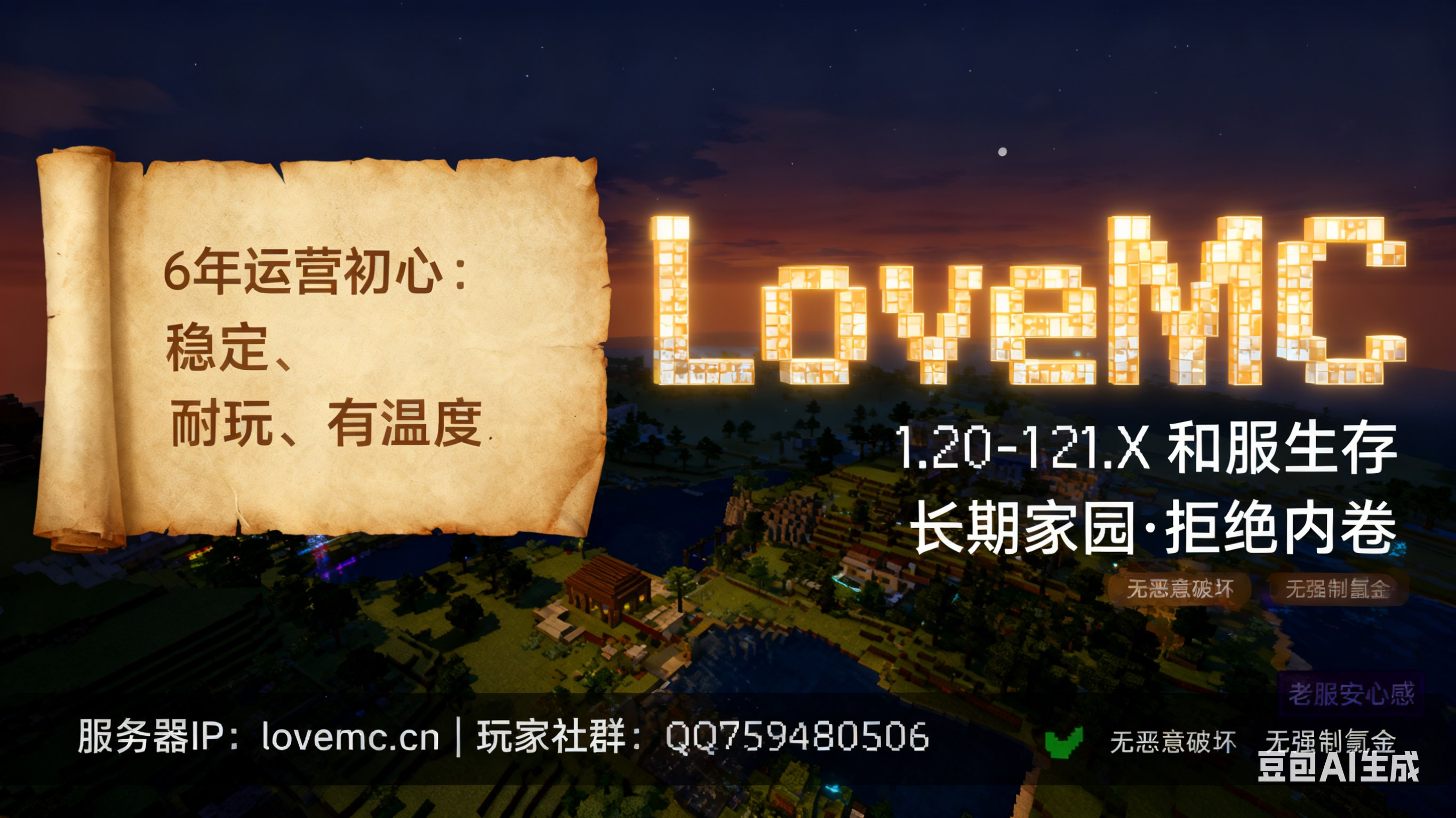 支持版本 | Java 版 1.21+ IP:Play.lovemc.cn 或 lovemc.cn |